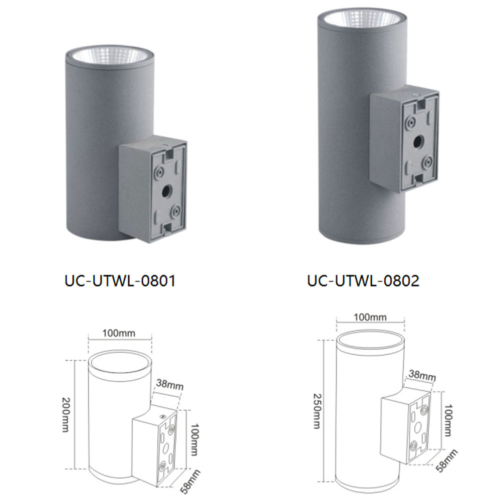 | UC-UTWL-0804 | CREE 3535 12W*2/OSRAM 3030 18W/COB 20W*2头 38° | 138*250*130 | Tube type, driver size 155*105*105/COB type, driver size 105*105*63 | 112 | / | Cast Aluminum(ADC12) | Meanwell/ Inventronics | 1800K-6500K | IP67 |
