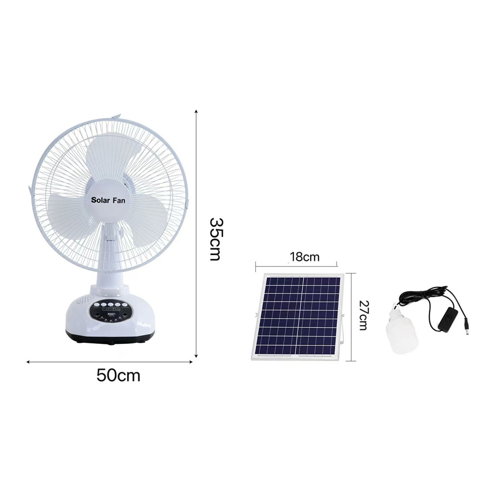 | LU-T98 | 12 W | 12 inches, | 6W polysilicon a plate 9V | 270*180mm | 18650 Lithium8000mah | 2A Adaptorcharger | 3 Gears;Speed 1280 rpm | 2-3 hours | about 4.5hours in level 3, about 6.5hours in level 2, and about 9hours in level 1 | Small night light,charging andindicator,equipped with 3M bulb lamp, USB charging interface, |
