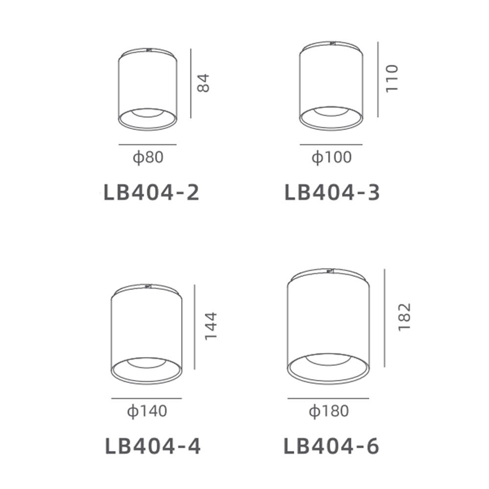 | LB404-3 | Φ100x110 | 15W/20W | 1405lm 15W | Aluminum | 3000K/4000K/5000K | ≥90 | 24°/36°/50° | |