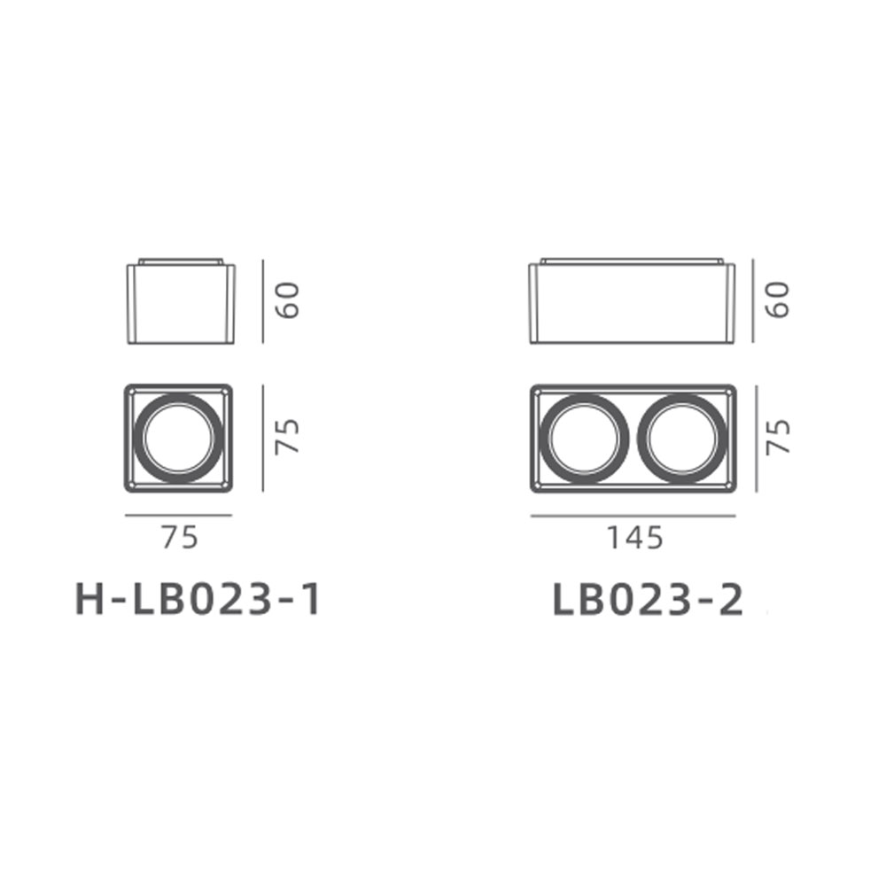 | LB023-2 | | 145x75x60 | 2X9W | 1460lm | Aluminum | 3000K/4000K/5000K | ≥90 | 15°/24°/36° |