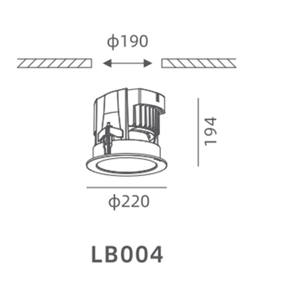 | LB004 | | Φ220x194 | Φ190 | 70W | 6930lm | Aluminum | 3000K/4000K/5000K | ≥90 | 12°/24° |