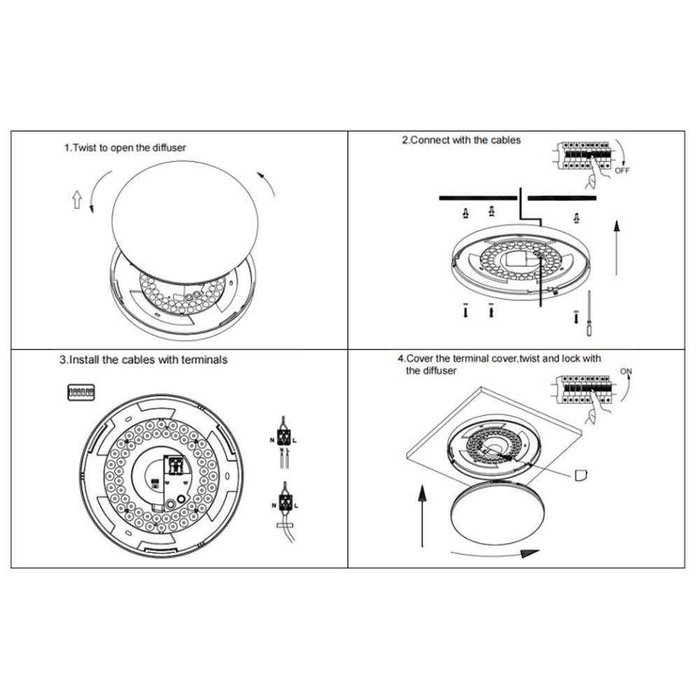 | LU-CLD250 | 12W | ⌀250*55mm | 90 lm/W | PS | >80Ra/90Ra | DIP:3000K/4000K/6000K | 100° | IP54 |