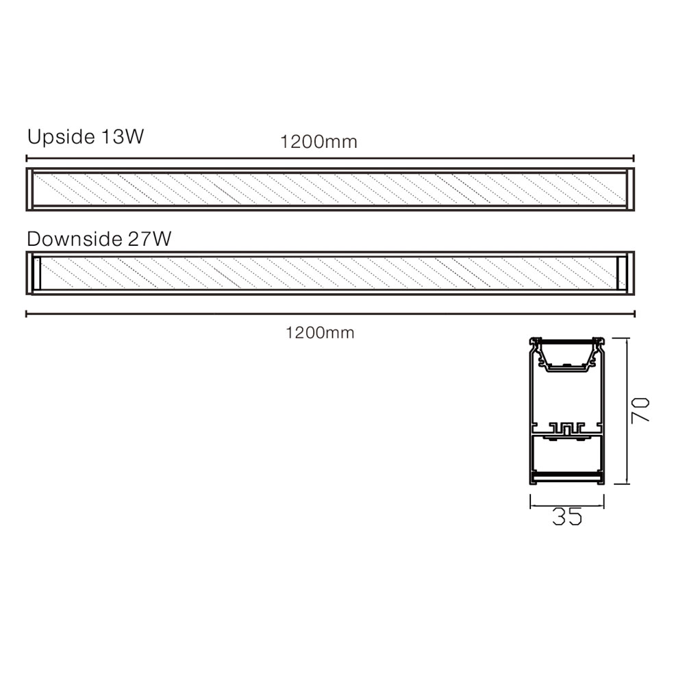 | LU-L3570A-UU | up 13W /down 27W | 1200x35x70mm | 100lm | Osram | 85 | 4000K | up 120° down 120° |