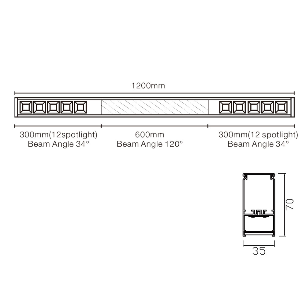 | LU-L3570B-DUR | 40W | 1200x35x70mm | 100lm | Osram | 85 | 3000/4000K | 100/34° |