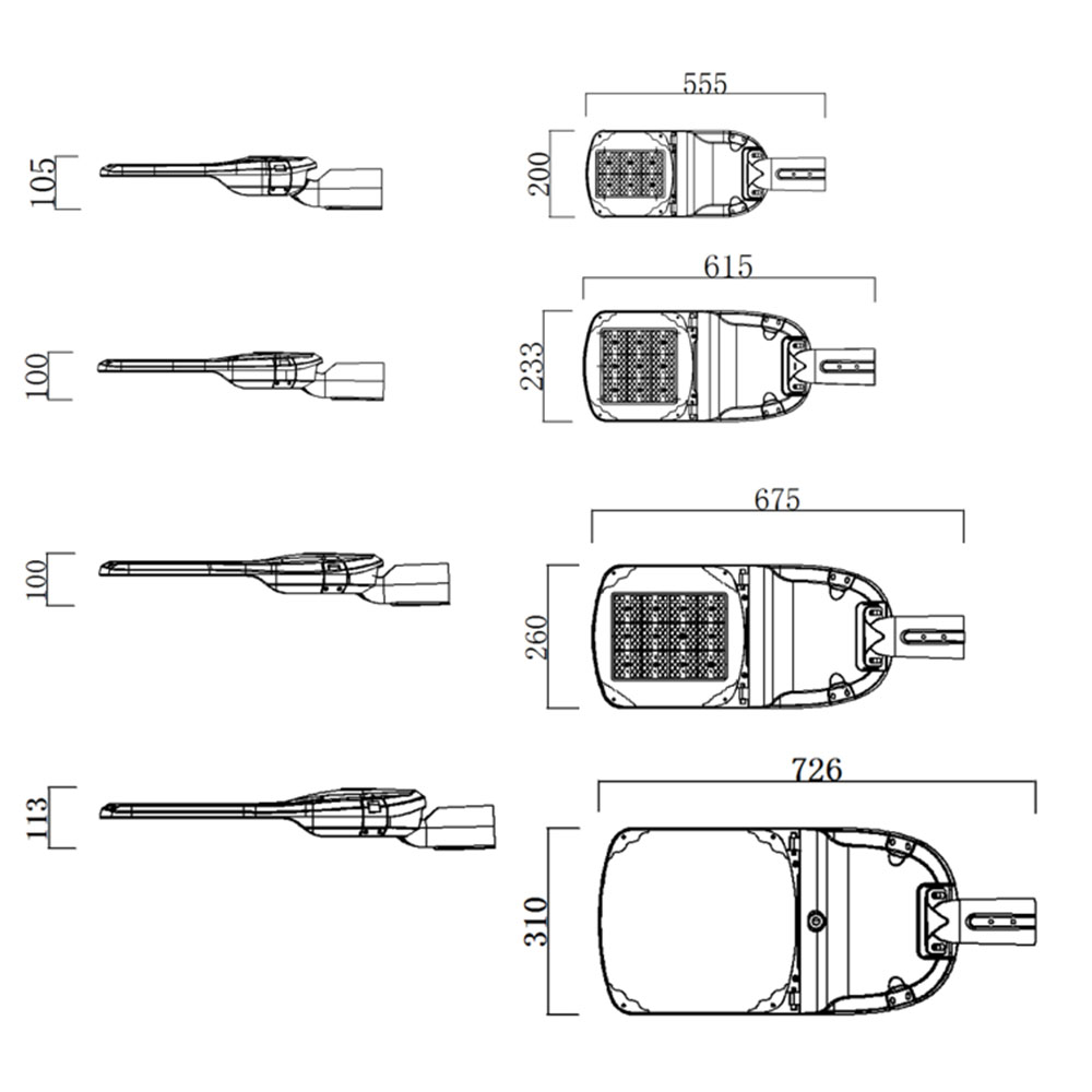| LU-STD-15 | 30W/40W/50W/60W/80W | 555*200*105 | 130 - 160lm/W | Die-cast aluminum | Inverntronics/Meanwell | Lumileds | 70/80 | 1800K -6500K | IP66 |