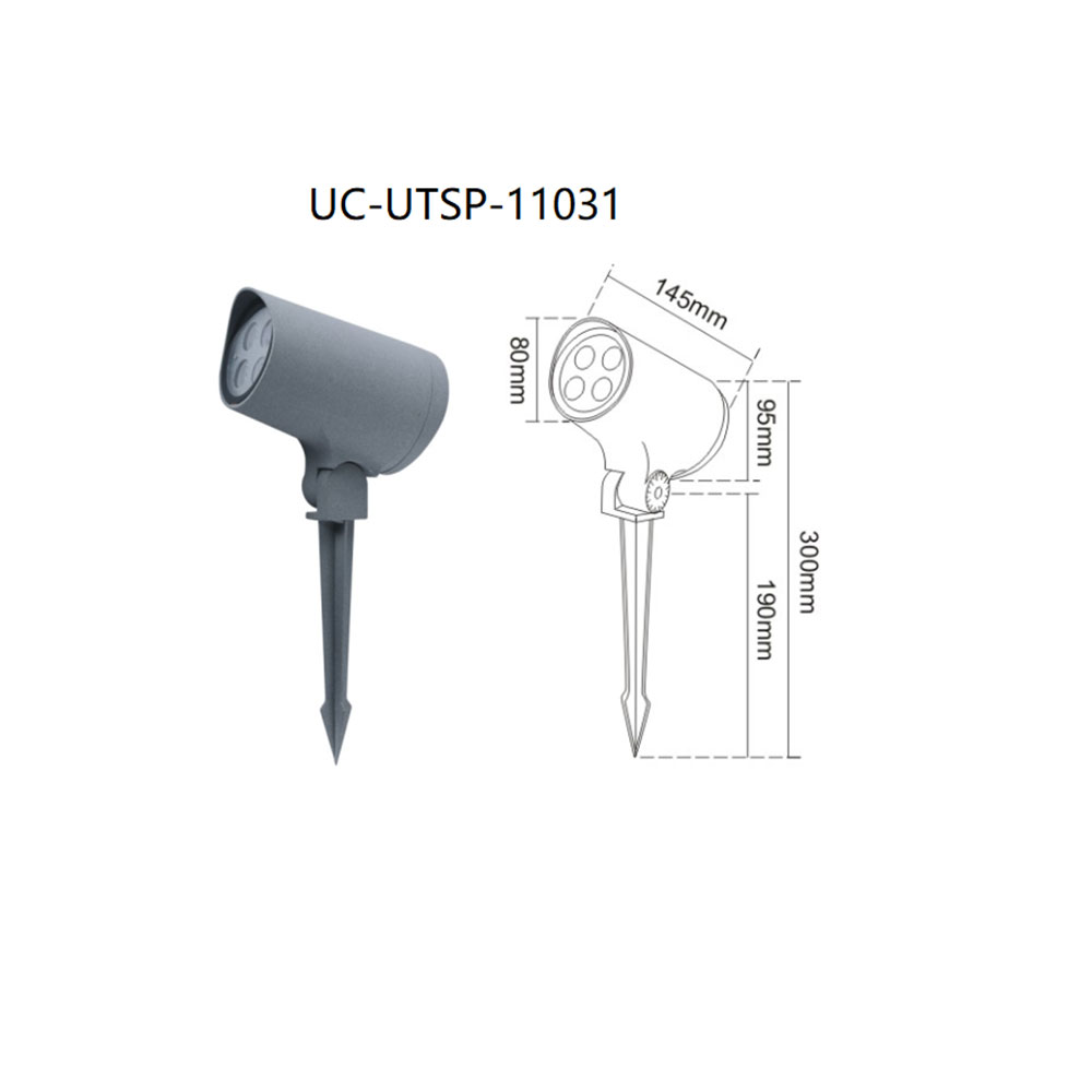 | UC-UTSP-11031 | CREE 3535 3W/4*3W/DTJ 10°/20°/30°/COB 90°15W | 145*80*300 | 80*70*70 | 65 | / | Cast Aluminum(ADC12) | Meanwell/ Inventronics | 1800K-6500K | IP67 |