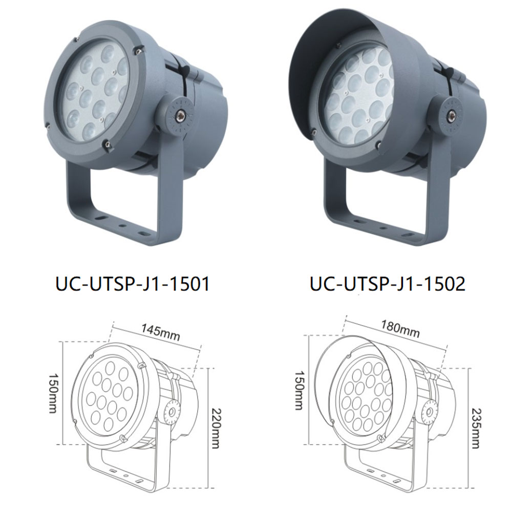 | UC-UTSP-J1-1501 | CREE 3535 12*2W/OSRAM 3030 18W | 145*150*220 | 110*110*55 | 112 | / | Cast Aluminum(ADC12) | Meanwell/ Inventronics | 1800K-6500K | IP67 |