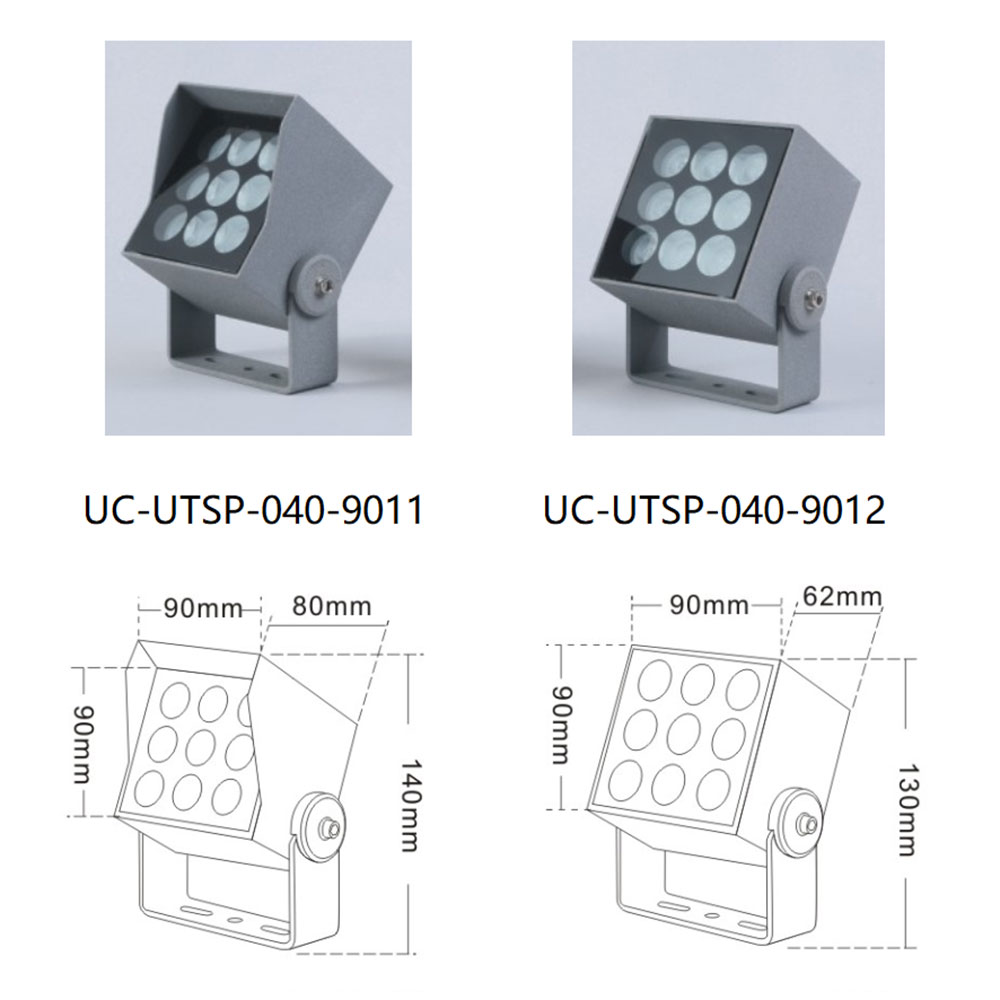 | UC-UTSP-040-9011 | CREE 3535 5W/9W/OSRAM 3030 9W/YSG 4*3W | 90*80*140 | 75*42*32 | 75*75 | / | Cast Aluminum(ADC12) | Meanwell/ Inventronics | 1800K-6500K | IP67 |